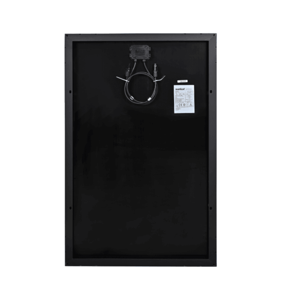 Mitat 1070 × 670 × 35 mm, kokonaan musta pinta ja kestävä musta eloksoitu alumiinirunko tekevät siitä sekä esteettisesti että toiminnallisesti sopivan mobiiliin ympäristöön. Asennus on helppoaliittimet 900 mm:n kaapelit ansiosta. Suosittelemme yhdistämään laitteen MPPT-säätimeen optimaalisen latauksen varmistamiseksi.