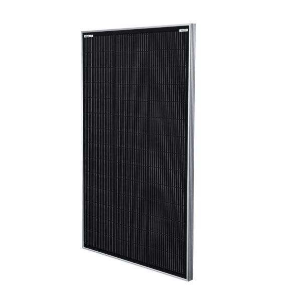 Paneeli on varustettu tyylikkäällä, kokonaan mustalla laminaattitaustaosalla, hopeanvärisellä alumiinikehyksellä ja sen mitat ovat 1070 × 670 × 35 mm. Liitetään helposti MPPT-säädinlaitteeseen optimaalisen lataamisen varmistamiseksi.
