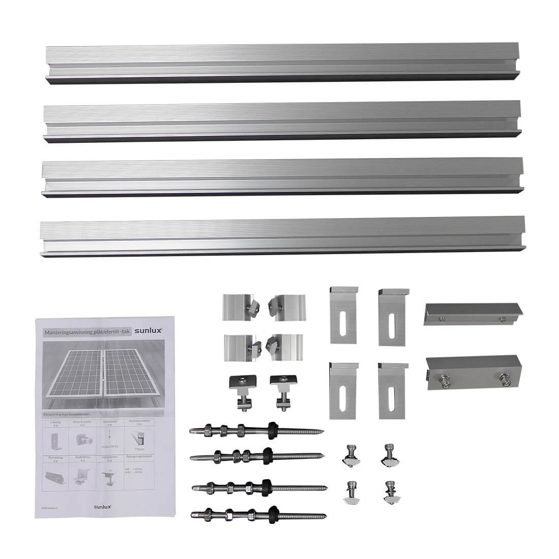 Suurempi 380 W:n mökkipaketti asennettavaksi metallikattoon. Tämä järjestelmä tuottaa riittävästi virtaa esimerkiksi kompressorijääkaapin, invertteri, LED-valaistuksen, matkapuhelimen lataamisen sekä television ja radion käyttöön kesäkaudella.
